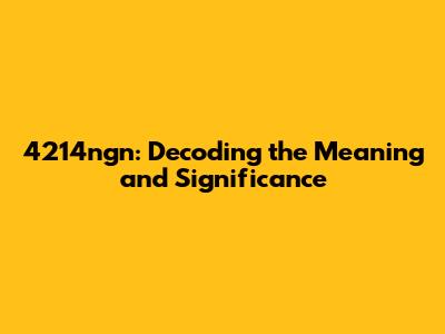 4214ngn: Decoding The Meaning And Significance