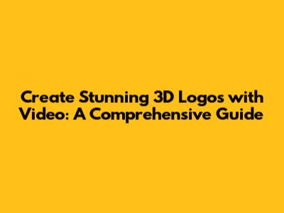 Create Stunning 3D Logos With Video: A Comprehensive Guide