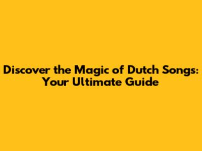 Discover The Magic Of Dutch Songs: Your Ultimate Guide