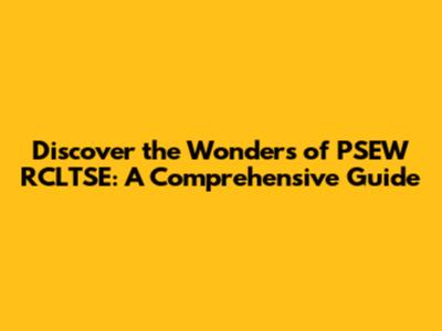Discover The Wonders Of PSEW RCLTSE: A Comprehensive Guide