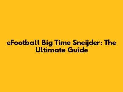 EFootball Big Time Sneijder: The Ultimate Guide