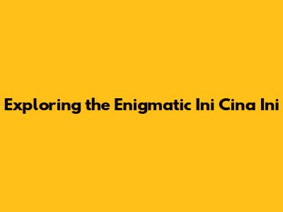Exploring The Enigmatic 'Ini Cina Ini'