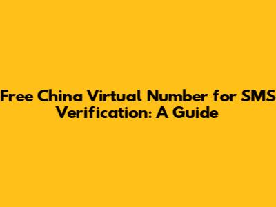 Free China Virtual Number For SMS Verification: A Guide