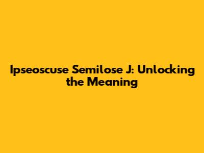 Ipseoscuse Semilose J: Unlocking The Meaning