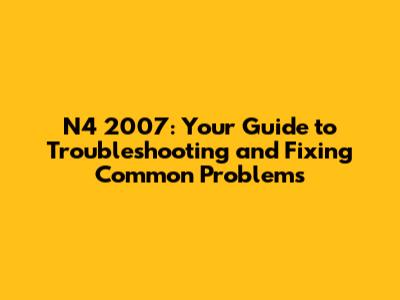 N4 2007: Common Issues & Solutions