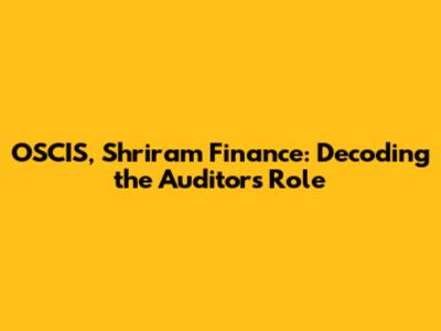 OSCIS and Its Connection to Shriram Finance Auditors