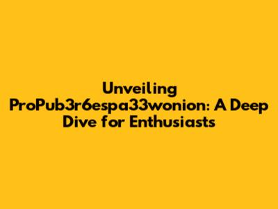 Unveiling ProPub3r6espa33wonion: A Deep Dive for Enthusiasts