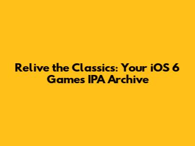 Relive The Classics: Your IOS 6 Games IPA Archive