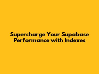Supercharge Your Supabase Performance With Indexes