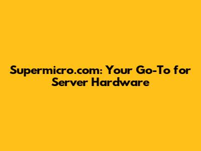 Supermicro.com: Your Source For Server Hardware