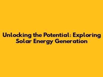 Unlocking The Potential: Exploring Solar Energy Generation