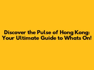 Discover the Pulse of Hong Kong: Your Ultimate Guide to What's On!